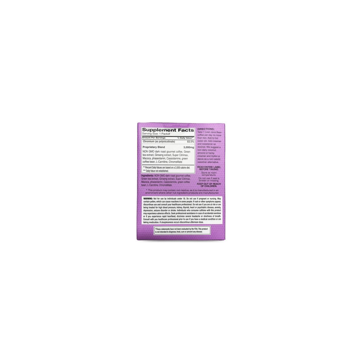 Lean Java Bean este o cafea delicioasă, 100% non-OMG, prietenoasă cu keto, care sprijină gestionarea greutății și ajută la reducerea apetitului. Cu ingrediente testate clinic, o aromă bogată de friptură italiană și comoditatea pachetelor de stick-uri instant, Lean Java Bean este o alegere excelentă pentru a vă susține un stil de viață sănătos și obiectivele de fitness.